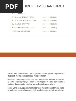 Tumbuhan lumut (bryophyta) merupakan tumbuhan yang mengalami metagenesis yaitu, berlangsung pergiliran keturunan antara fase gametofit dan sporofit. Jan 18, 2016 · generasi sporofit; Pada generasi ini, tumbuhan paku akan menyokong kehidupan awalnya, sementara pada tumbuhan lumut fase ini adalah penanda bahwa tumbuhan tersebut mencapai pada kedewasaan. Sporofit adalah suatu fase pada makhluk hidup di mana pada fase ini. Tumbuhan yang hidup di darat, menghasilkan buah, tulang daun membentuk pola menyerupai jala, memiliki kambium, akar mempunyai perisikel, dan berkas pembuluh pada batang tersusun melingkar adalah.