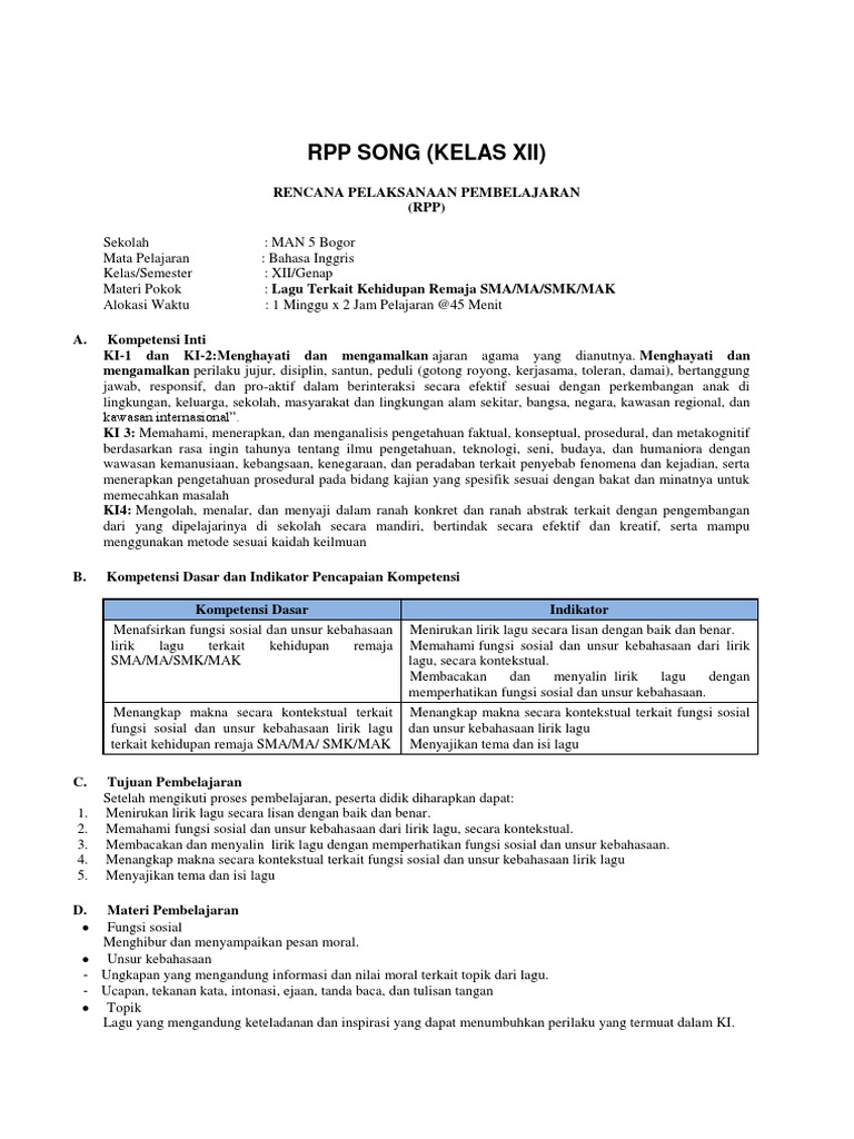 Rpp Bhs Inggris Minat 1 Lembar Kelas 12 Sma Semester 2 Tahun 2021 from 1.bp.blogspot.com Jawaban lainnya ada di bawah. Lagu terkait kehidupan remaja sma/ma/smk/mak. Menyampaikan materi bahasa inggris dalam bentuk lagu diyakini sangat efektif. Tidak bisa dipungkiri bahwa kehidupan menyimpan sisi manis dan juga sisi pahit yang penuh tanda tanya. Di dalam poin surat keputusan itu terdapat beberapa poin yang memperbolehkan guru untuk menggunakan format lirik lagu terkait kehidupan remaja sma/ma. 20201207 lirik lagu bahasa inggris tentang kehidupan remajaumbrella ini rilis pada 9 juni 2007 dan langsung merebut tempat puncak di tangga lagu. Dengan mendengarkan lagu terkait kehidupan smp/mts, 8, bahasa inggris. Contoh soal pg bahasa indonesia k13 kelas xi semester 1 dan jawaban nah di bawah ini adalah soal bahasa inggris tentang lirik lagu sma.