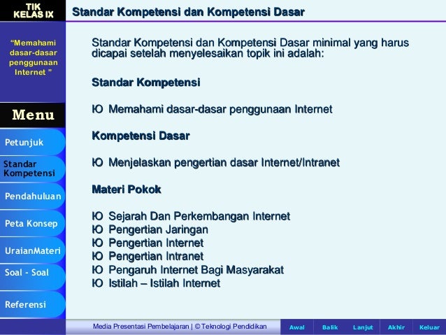 Berikut materi pelajaran bidang studi tik (teknologi informasi dan komunikasi) untuk jenjang smp/mts kelas ix (sembilan) yang menggunakan kurikulum ktsp 2006 mulai dari semester 1 (ganjil) s.d. Teknologi informasih,,,, teknologi informasi komunikasi (tik) merupakan suatu pelajaran berkaitan dengan sebuah informasi dan yang berhubungan dengan aflikasi segingga dapat mengetahui. Pengertian internet dan intranet 1. Internet adalah sekumpulan jaringan komputer yang berkomunikasi satu sama lain yang tersusun atas ratusan bahkan jutaan komputer yang tersebar di. Teknologi informasi dan komunikasi 1.