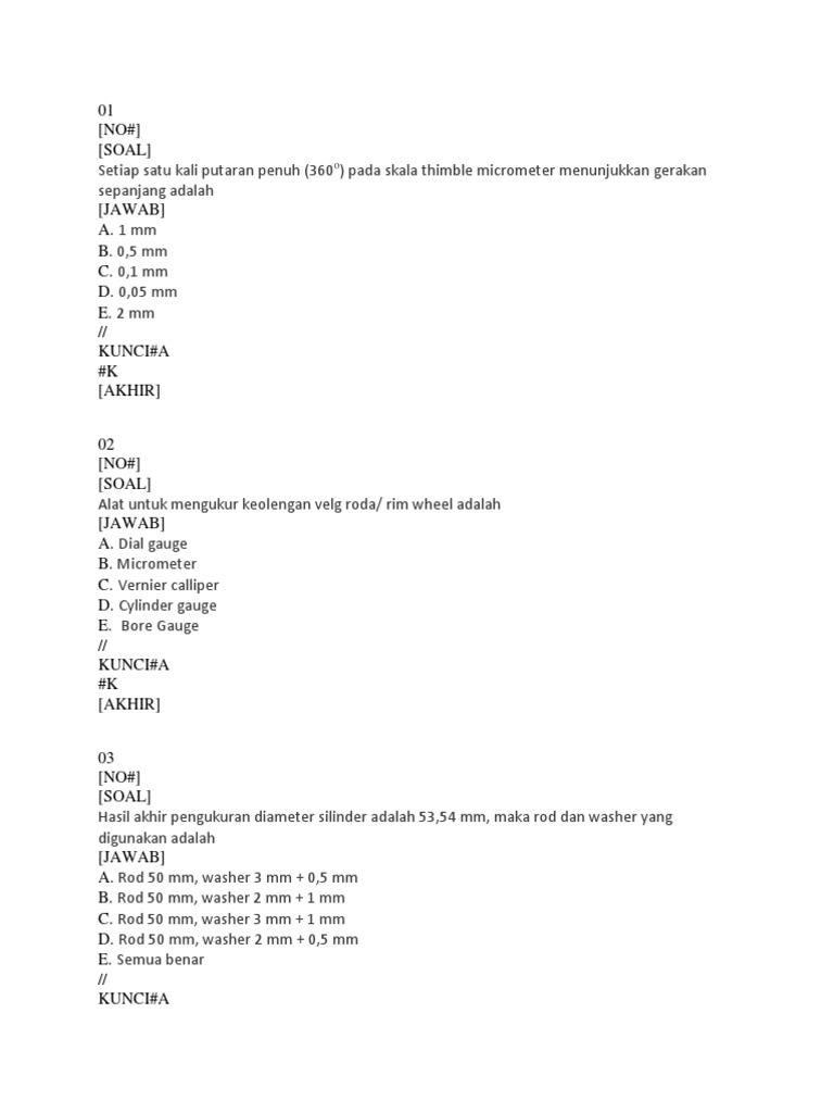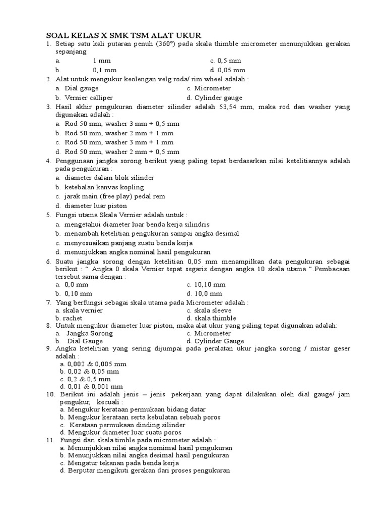 Soal Pdto from imgv2-1-f.scribdassets.com Setiap satu kali putaran penuh (360 o) pada skala thimble micrometer menunjukkan gerakan sepanjang. We did not find results for: Maybe you would like to learn more about one of these? Check spelling or type a new query.
